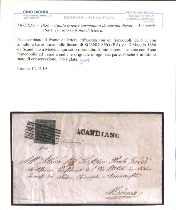 Lettera affrancata con 5 cent (7) da Scandiano (muto + S.D.) a Modova del 3.5.56 - esemplare toccato a sinistra - Vaccari