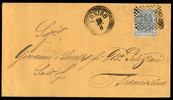 Lettera con 20 cent (T26) annullato 2615 a punti pił Lonigo C3 a lato - ex coll. Provera