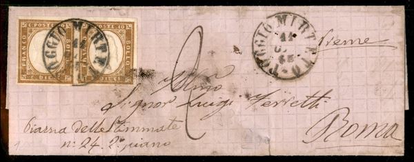 Lettera da Poggio Mirteto 11.10.65 recante coppia bene marginata del 10 cent (14Eb) - ex coll. Provera - raro insieme