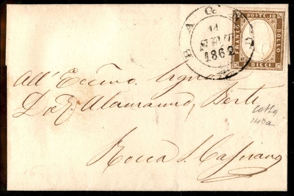 Letterina affrancata con 10 cent (14Da) - buoni margini - Bagno 11.9.62 in DC grande - ex coll. Provera - Colla