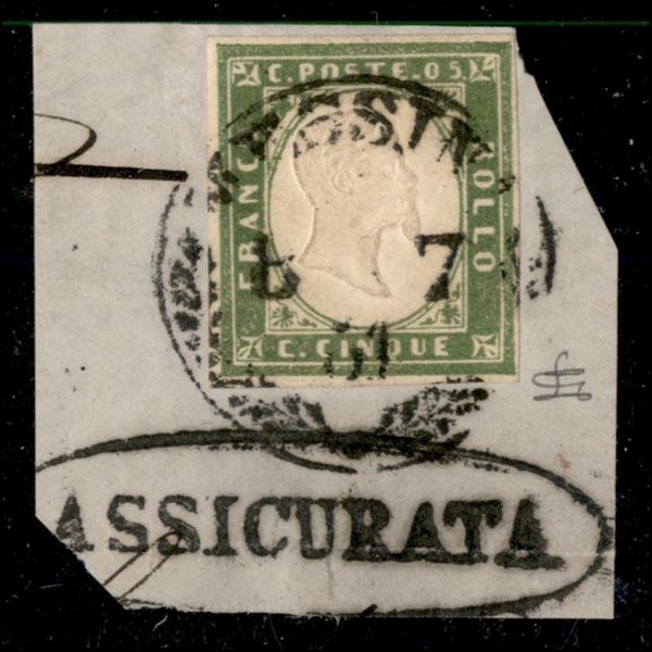 Messina (8.7.61) + Assicurata - 5 cent (13C - Sardegna) usato su frammento
