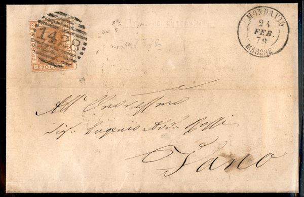 Mondavio (Marche) + numerale 1428 - 20 cent (28) su bustina per Fano del 24.2.78
