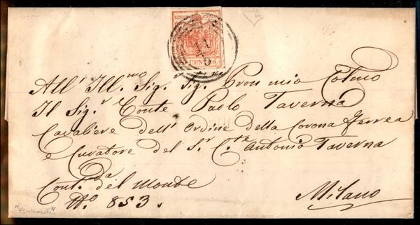 Muto di Gallarate (P.ti 11) - 15 cent (20) su lettera per Milano del 11.5.1856 - cert. En. Diena
