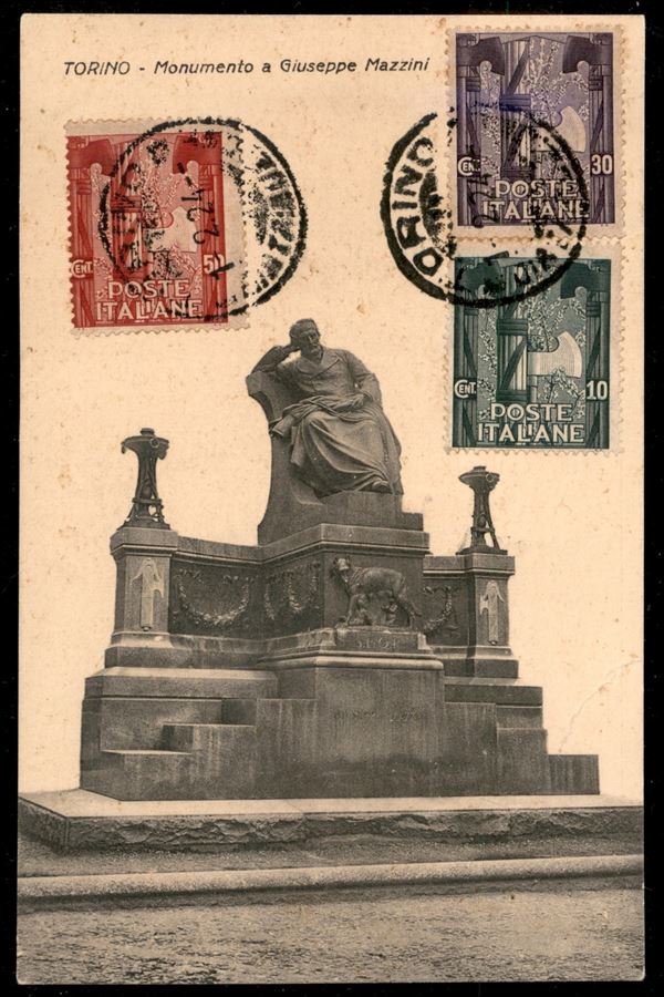 Quattro cartoline viaggiate affrancate con la serie per la Marcia su Roma (141/6)