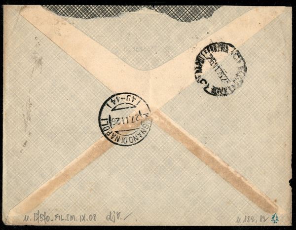 Raccomandata da Castelnuovo Monterotaro (Foggia) 25.11.26 affrancata con 10 cent rosa Leoni + 1,75 lire su 10 oliva e rosa Floreale soprastampato (82 + 182) per Mugnano di Napoli - splendida