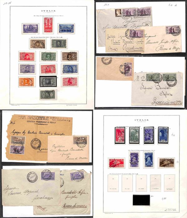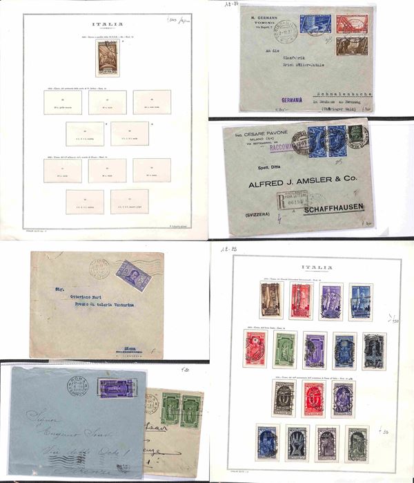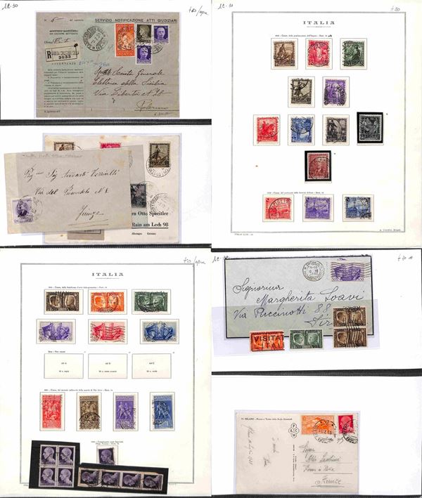 REGNO - 1900/1945 - Bel resto di collezione di valori usati anche serie complete importanti pił diverse buste sia di ordinaria che di servizi del periodo montati in album Marini - alto valore di catalogo - molto valori firmati - merita attento esame