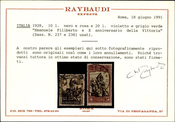 Serie di tredici valori per E. Filiberto (226/238) - cert. Raybaudi per 10 e 20 lire