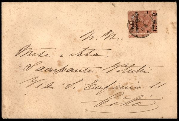 Soprastampa spostata (in basso sulla dentellatura) - 2 cent su 50 (52afa) isolato su busta per cittą - Roma 20.3.91