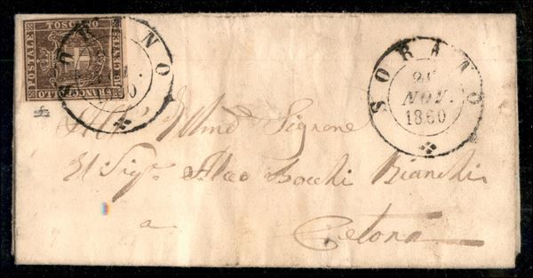 Sorano (P.ti 8) - 10 cent (19) sollevato per controllo su lettera per Cetona del 26.11.1860 - L. Gazzi