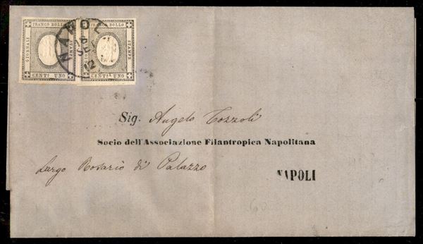 Stampato da Napoli 18.9.63 recante due esemplari bene marginati del centesimo (19) - ex coll. Provera