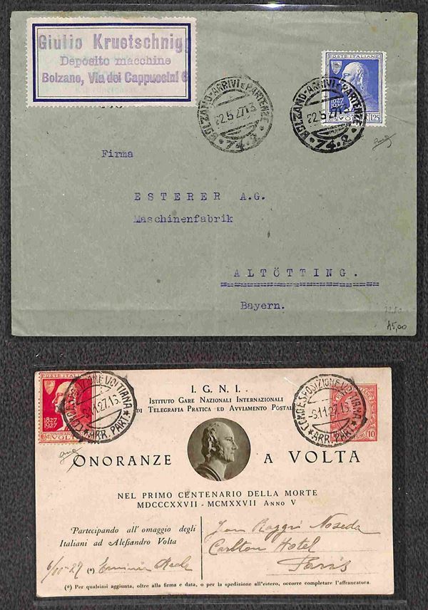 Volta (210/213) - la serie completa su 3 buste e 1 cartolina viaggiate - due firmate
