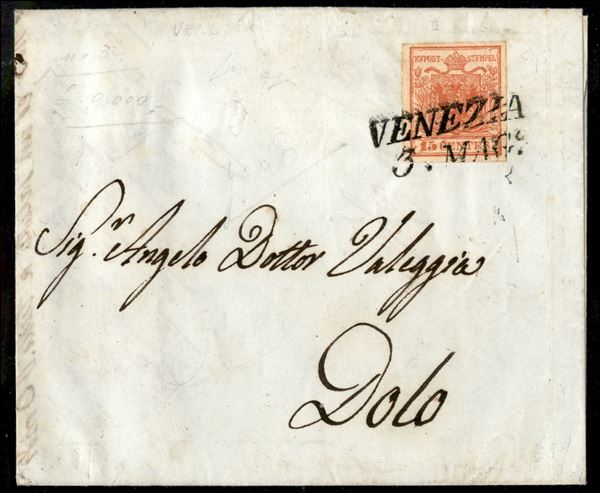 15 cent (14) con leggere coste verticali - lettera da Venezia a Dolo del 3.5.51