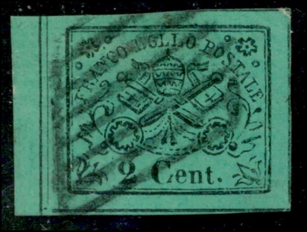 1867 - 2 cent Stemma (13) bordo di foglio a sinistra - usato