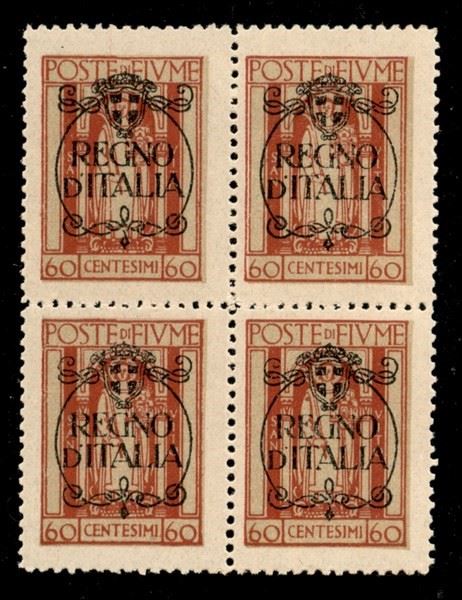 1923 - 60 cent Regno d'Italia (209 varietà nc) - quartina con dentellatura centrale spostata - gomma integra
