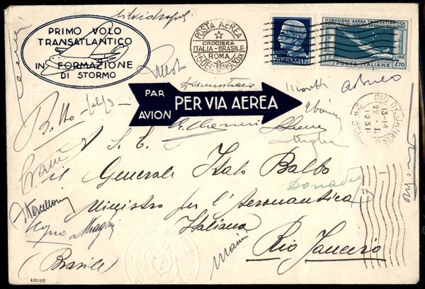 1930 (30 dicembre) - Crociera Italia Brasile - Longhi 2248 - Aerogramma affrancato con 7,70 lire pił complementare (Aerea 25) - firma Balbo in nero