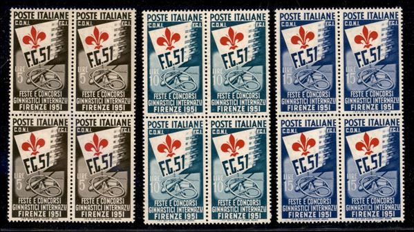 1951 - Ginnici (661/663) - serie completa in quartine - gomma integra