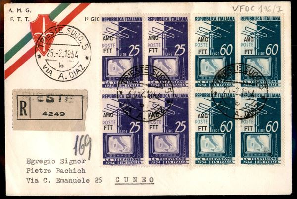 1954 - FDC Televisione soprastampati (196/197) - serie completa in quartine