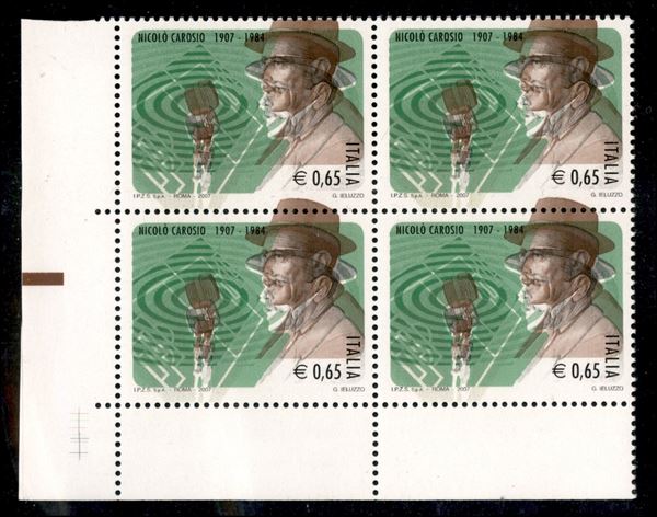 2007 - Quartina del 0,65 € Carosio (2952 - specializzato 2603Aa) con colori fuori registro - gomma integra