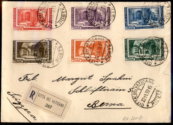 Busta raccomandata affrancata con Archeologia Cristiana (55/60) - serie completa non in tariffa da Cittą del Vaticano per Berna del 22.11.38