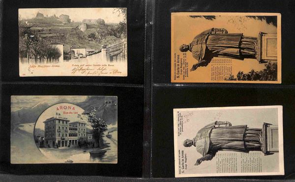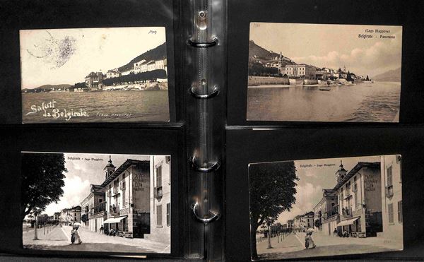 CARTOLINE PAESAGGISTICHE - 1900/1940 - Piccola collezione di oltre 170 cartoline del periodo in un album e diverse plastiche di Arona e Belgirate - molte cartoline interessanti in buone condizioni - merita esame