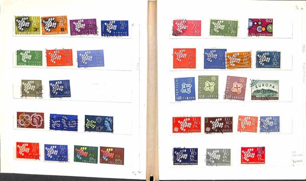 EUROPA CEPT - 1956/1988 - Collezione di valori e serie complete del periodo montati in 8 piccoli raccoglitori con ripetizioni - nuovi e usati