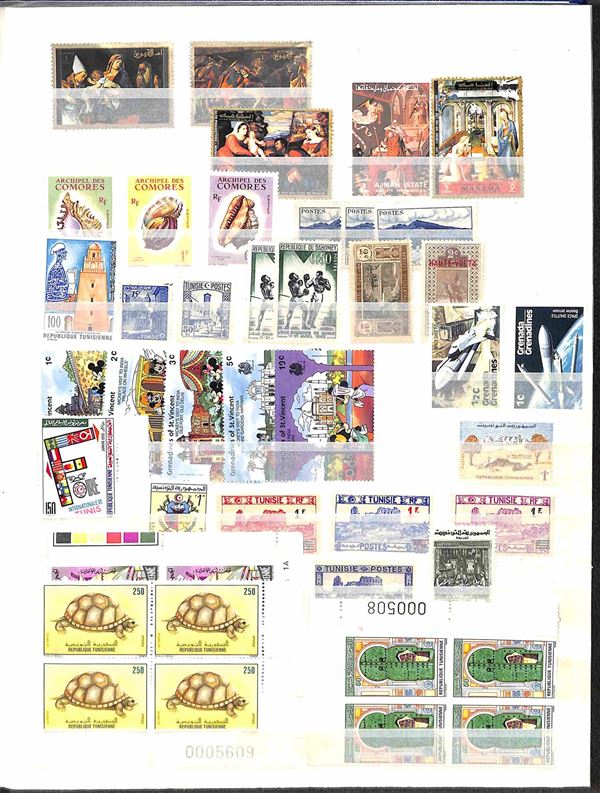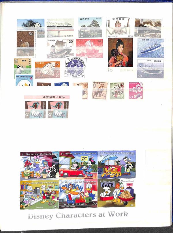 MONDIALE - 1950/1980 circa - Insieme di valori e serie complete del periodo con diverse tematiche tra cui Personaggi Flora e Fauna Trasporti e Walt Disney montati in due album raccoglitori - bell'insieme - principalmente gomma integra - merita esame