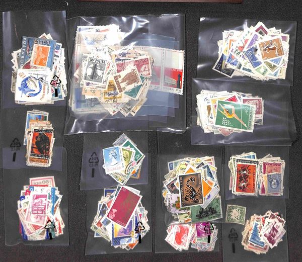 MONDIALE - Grande accumulazione di migliaia di valori in bustine e mazzette il tutto in una scatola - principalmente usati - da esaminare