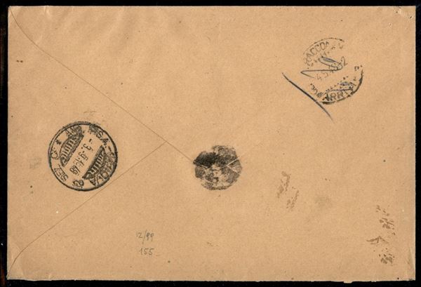 Quartina del 15 cent Risorgimento (587) + 35 lire Radio P. Aerea (140) su raccomandata da Pistoia a Genova del 3.9.48 - molto bella