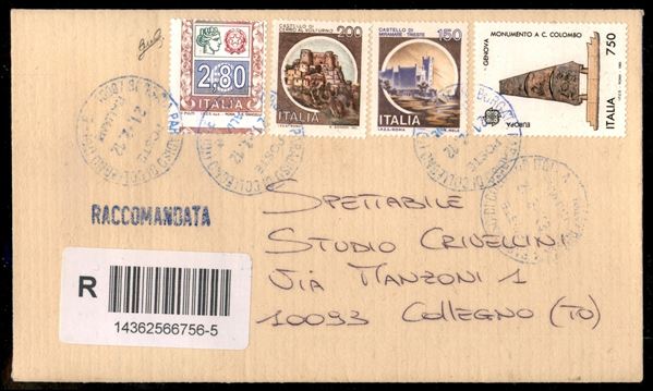 Raccomandata affrancata con 2,80 € (2739) con dentellatura fortemente spostata + complementari da Collegno per città del 21.2.12 - Biondi