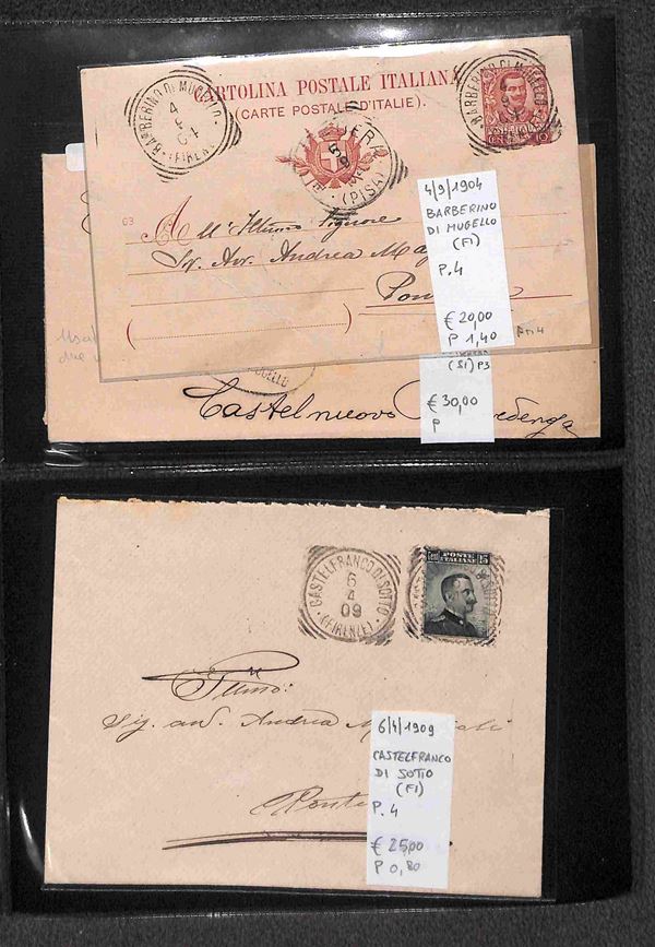 REGNO - 1893/1914 - Tondo Riquadrati - Collezione di oltre 180 buste e cartoline degli annulli della provincia toscana di Firenze in un album - merita esame