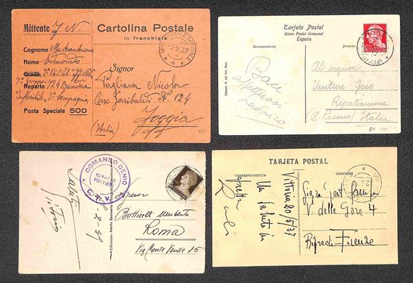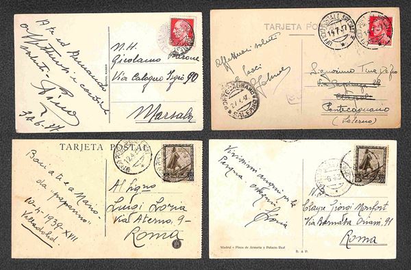 REGNO - Guerra di Spagna - Insieme di 24 cartoline affrancate e in franchigia annullate con bollo Ufficio Postale Speciale delle truppe impegnate nel conflitto