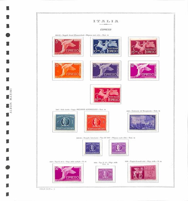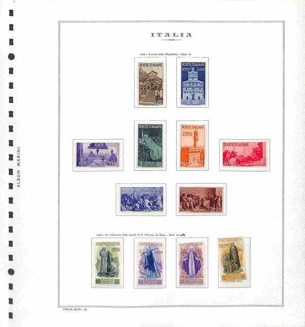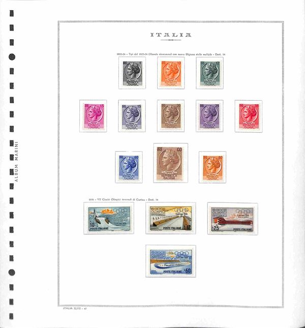 REPUBBLICA - 1945/1970 - Collezione di valori nuovi quasi completa con le serie e i valori pił importanti compreso Gronchi Rosa ma senza Cavallino montata su album Marini - merita esame