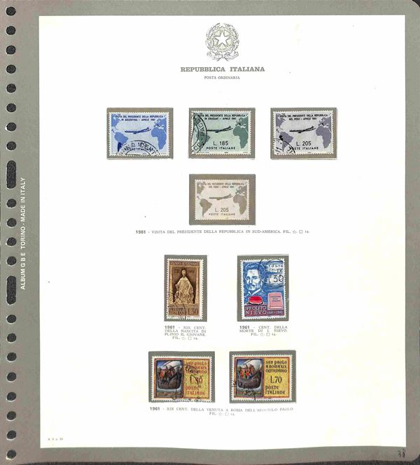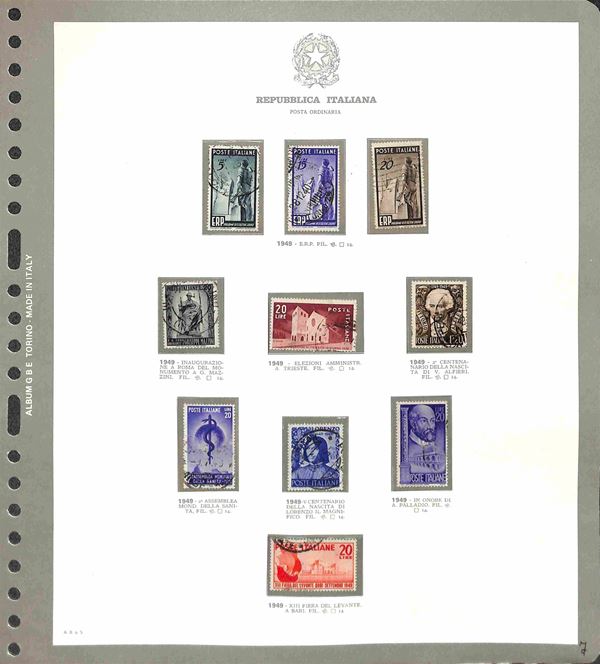 REPUBBLICA - 1945/2015 - Collezione avanzatissima di valori serie complete foglietti e minifogli di posta ordinaria (no Gronchi Rosa) del periodo (pochissime mancanze) montati in 6 eleganti album con fogli e custodia GBE - usati - valore di catalogo 7000 € circa