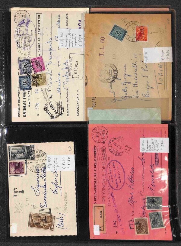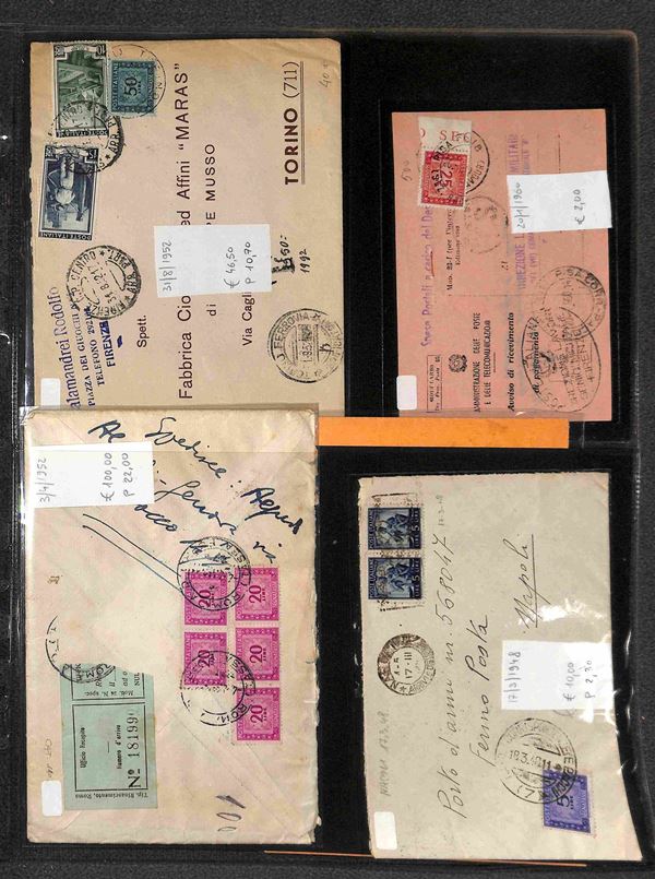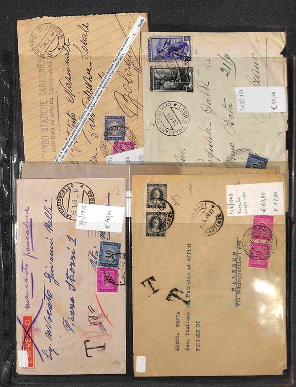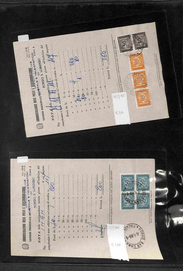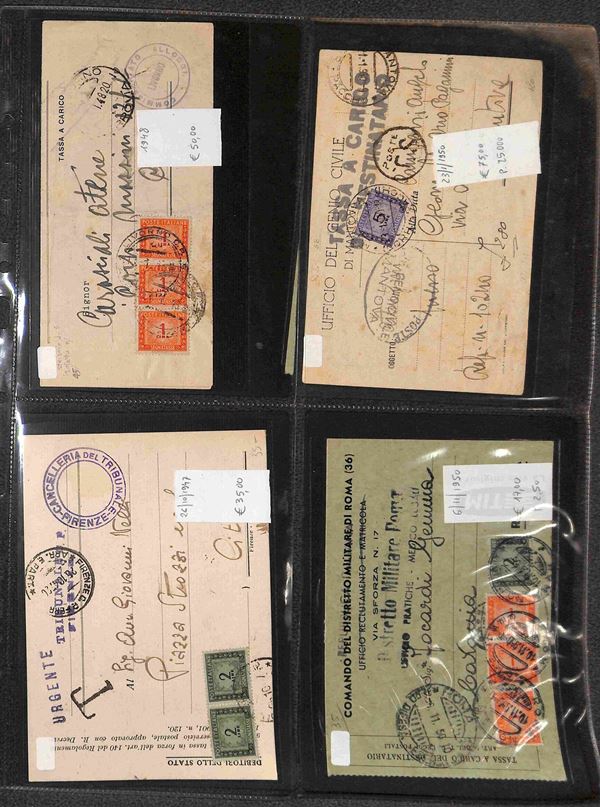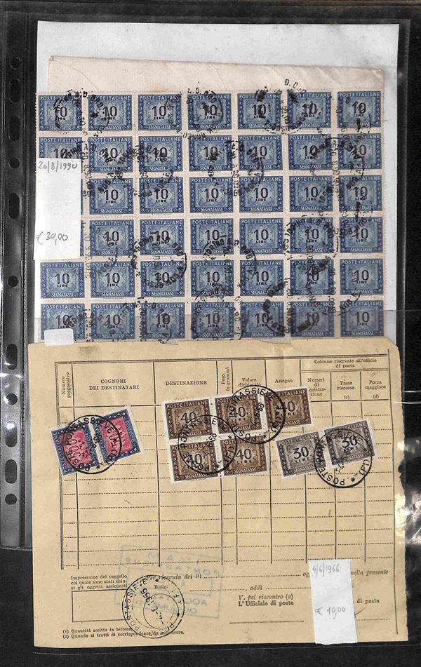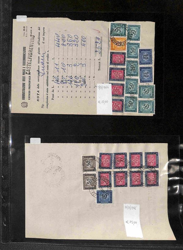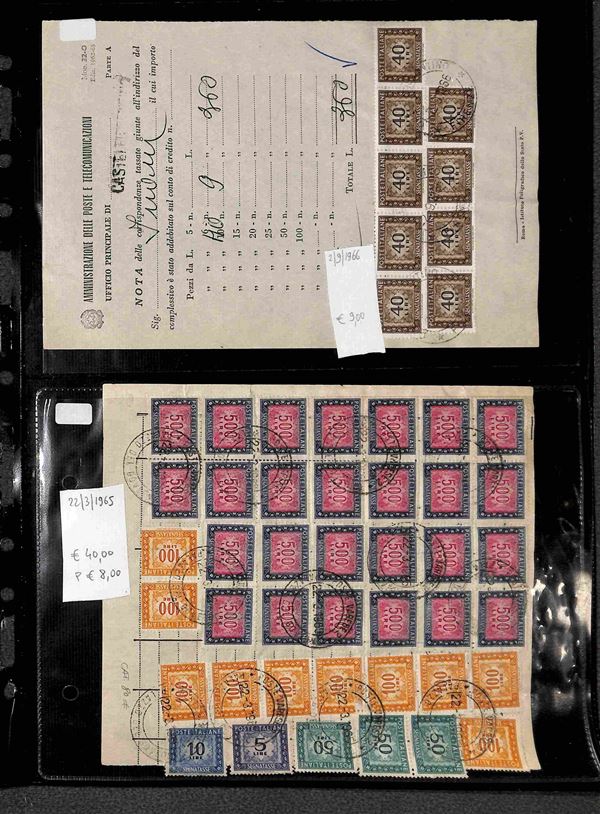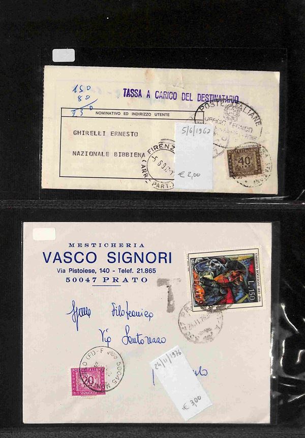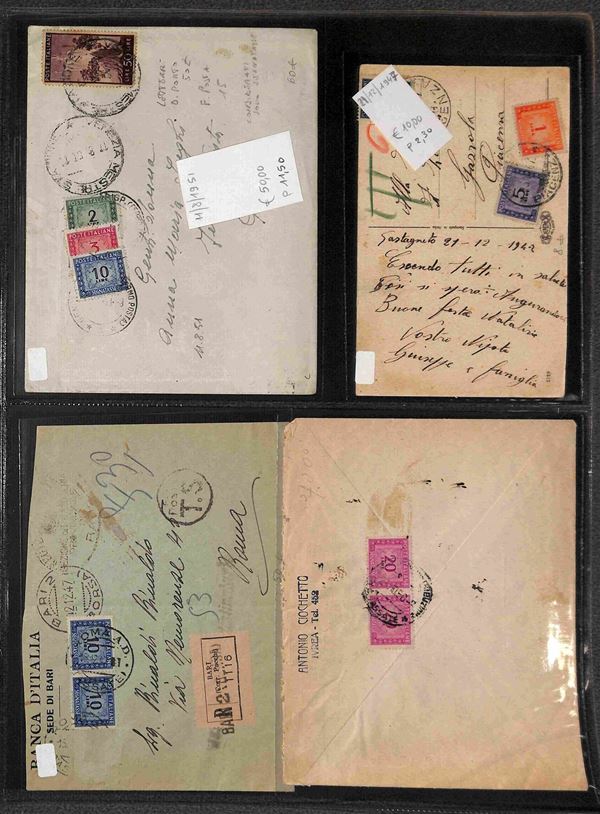 REPUBBLICA - 1947/1993 - Segnatasse e Pacchi in Concessione - Collezione di circa 170 buste e cartoline con affrancature del periodo in un album - merita esame