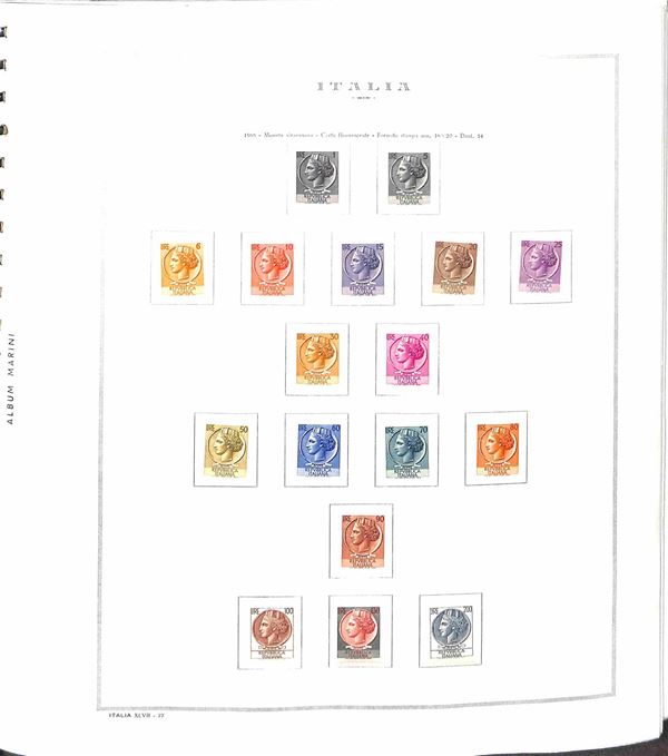 REPUBBLICA - 1960/1988 - Collezione avanzatissima di valori e serie complete di posta ordinaria del periodo montati in album e fogli Marini - non presente Gronchi Rosa - gomma integra - ben conservati