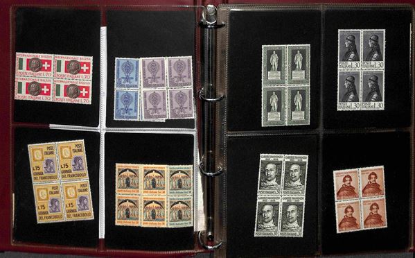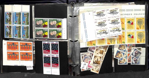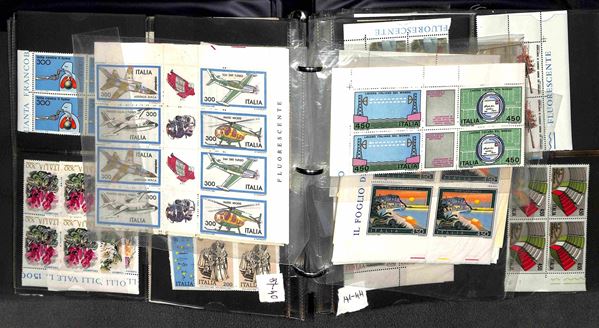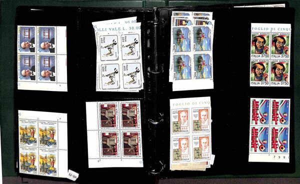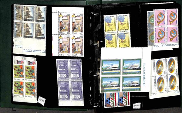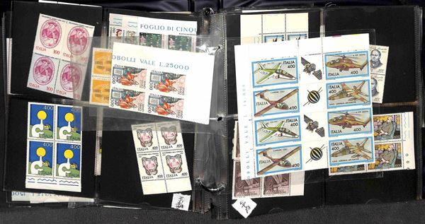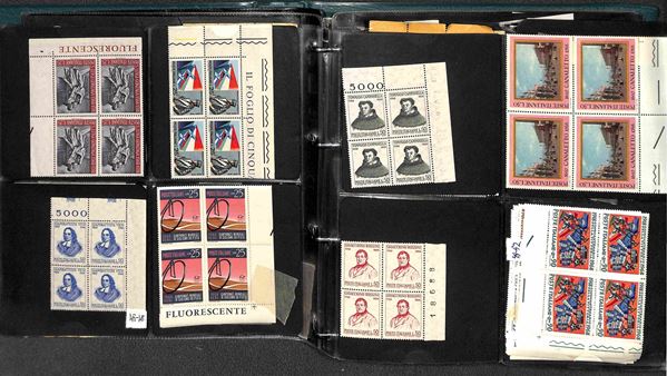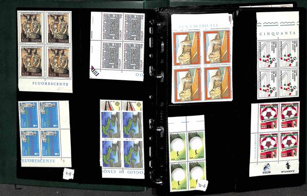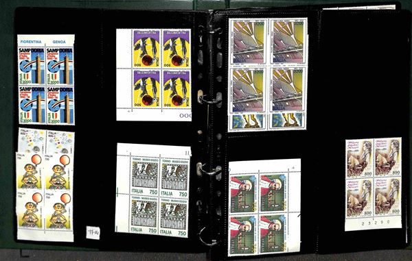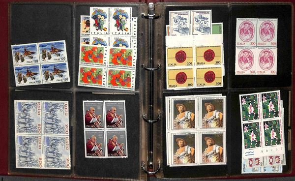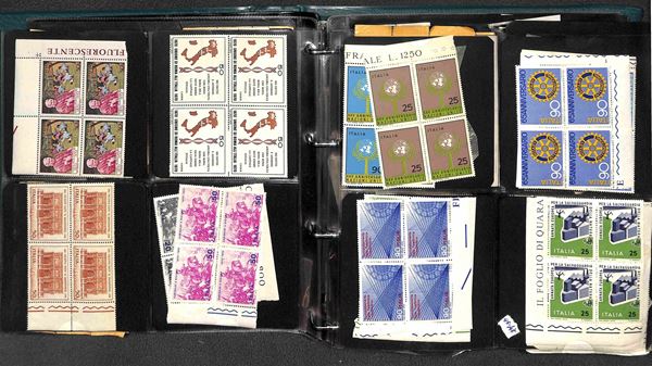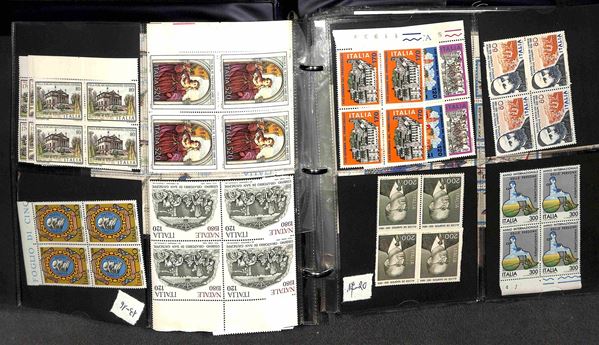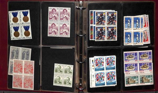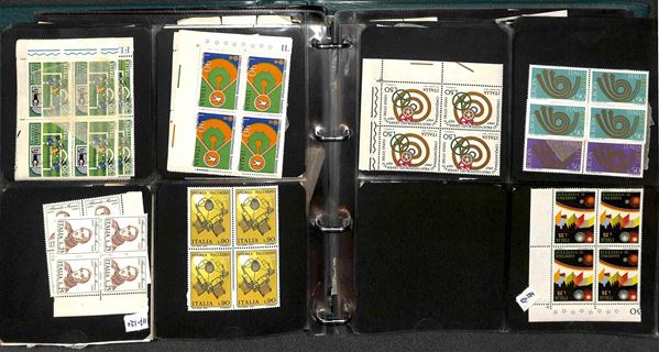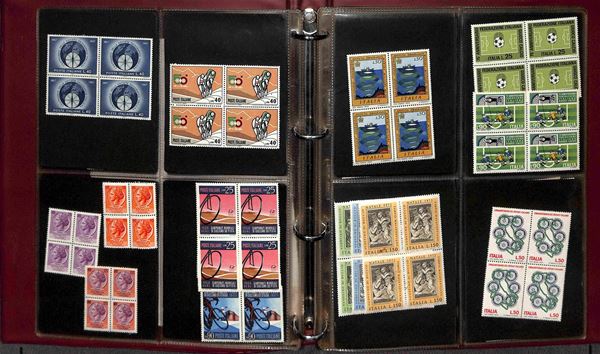 REPUBBLICA - 1966/1995 - Collezione di valori e serie complete del periodo in quartine montati in 4 album raccoglitori a tasche - valido insieme per affrancatura - gomma integra