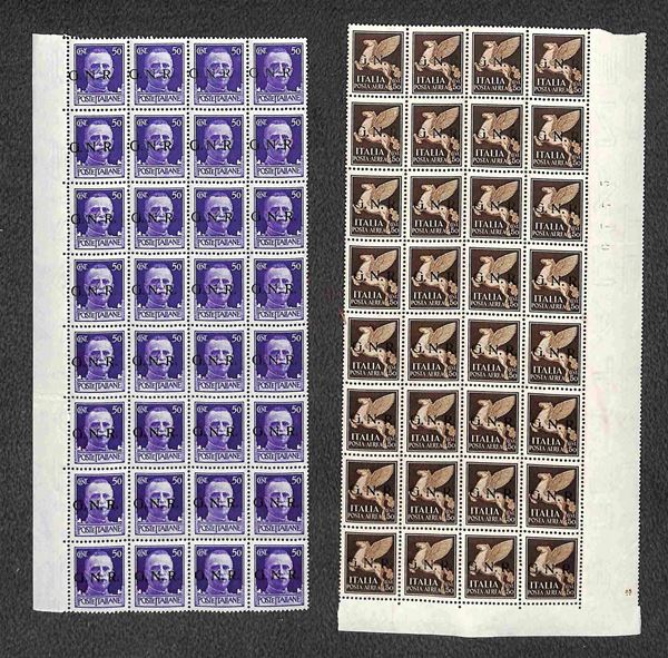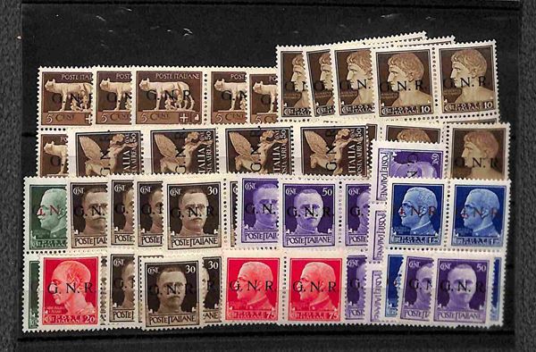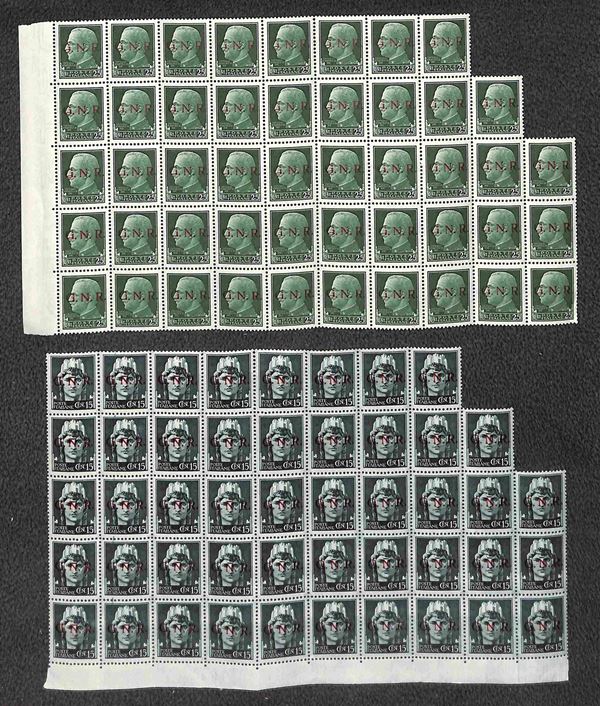RSI - 1943/1944 - Piccolo lotto di valori nuovi del periodo in quartine e blocchi prinicipalmente della tiratura di Verona - valore di catalogo oltre 3300 € - gomma integra