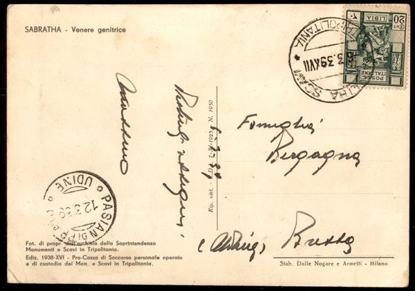 Sabratha Scavi Tripolitania 6.3.39 - 20 cent (40) su cartolina per Udine