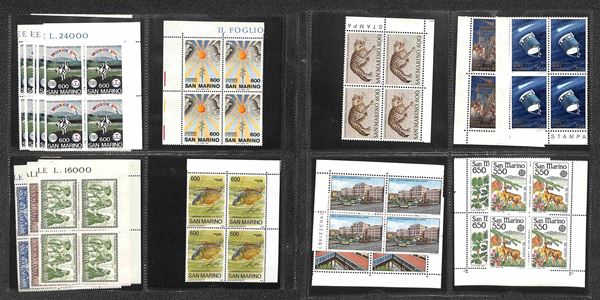 san marino - 1945/1995 - Collezione di valori e serie complete del periodo montate in album raccoglitore a tasche - singoli dal '45 al '75 e in quartina dal '71 al '95 - gomma integra
