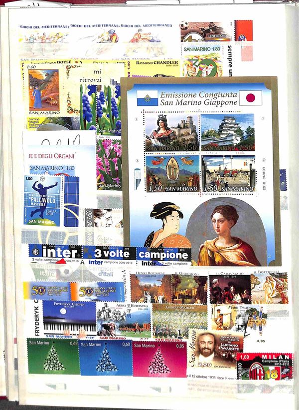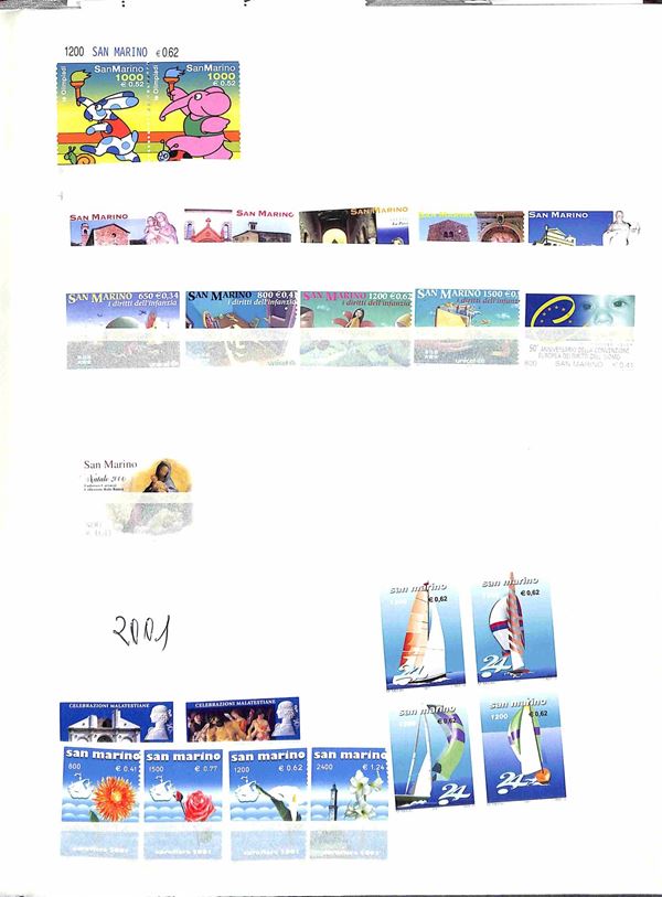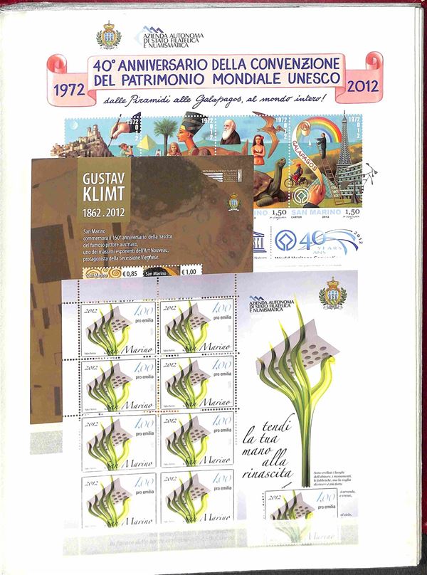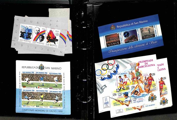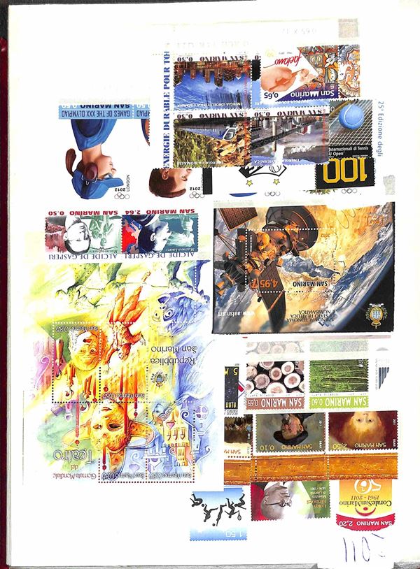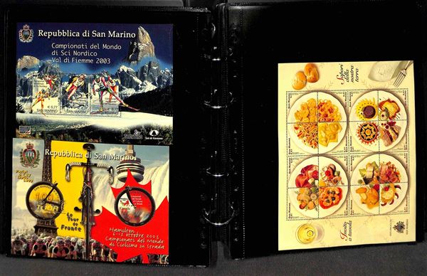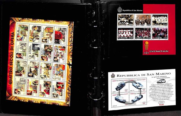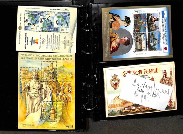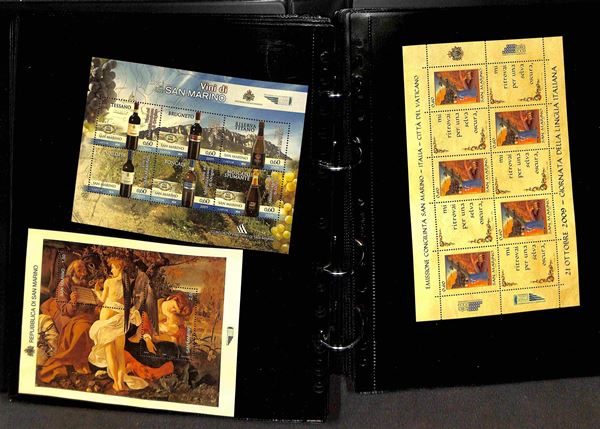 SAN MARINO - 1996/2016 - Collezione avanzata di valori serie complete foglietti minifogli e libretti del periodo montati in album raccoglitore + piccolo album raccoglitore a tasche - gomma integra