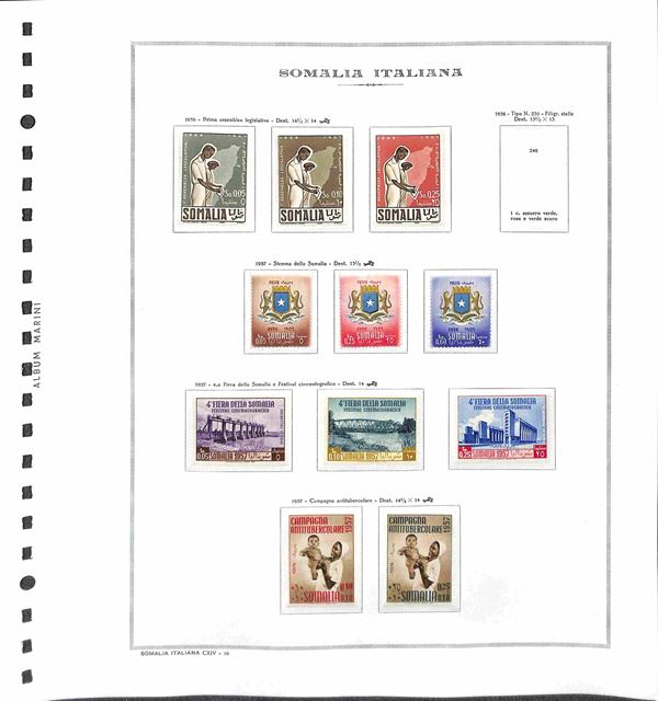 SOMALIA AFIS - 1950/1960 - Collezione avanzata con poche mancanze montata su fogli Marini - valori nuovi compresi servizi ma senza foglietti - merita esame