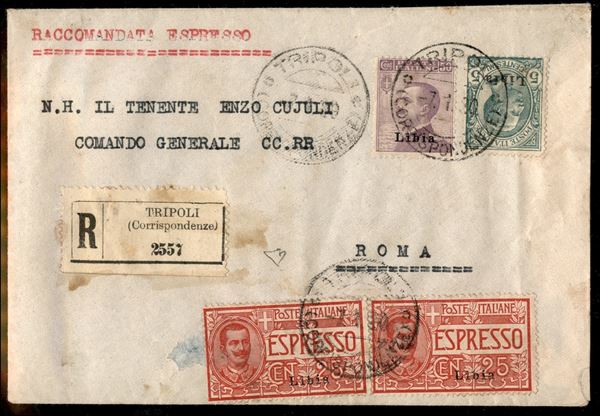 Soprastampati (3 + 9 + Espressi 1 + 1) - raccomandata espresso da Tripoli a Roma del 7.1.20 - Diena (1.030)