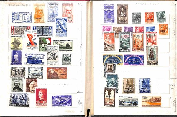 TRIESTE A - AMG-FTT - 1947/1954 - Collezione avanzata di valori e serie complete del periodo montati in piccolo raccoglitore - gomma originale integra e usati - valore di catalogo circa 700 €