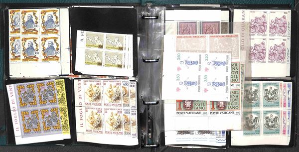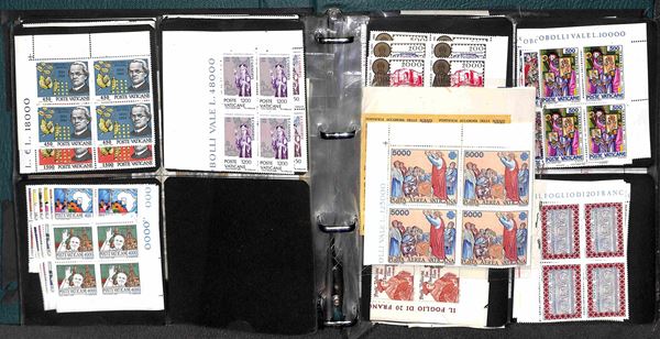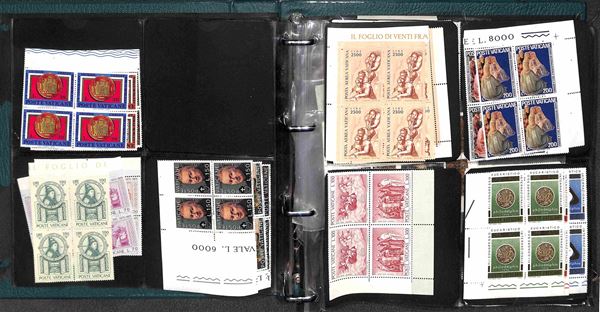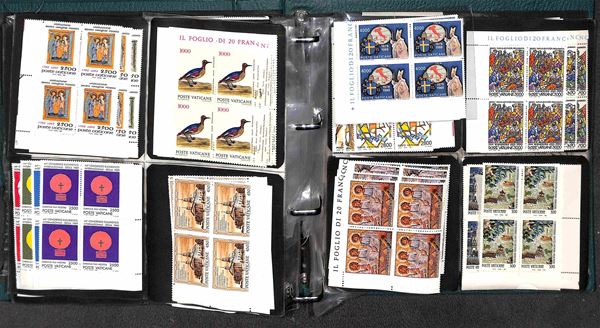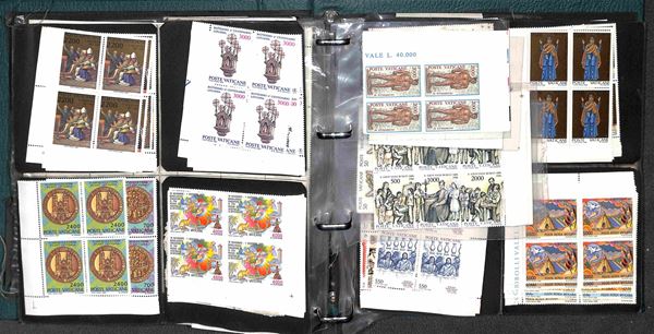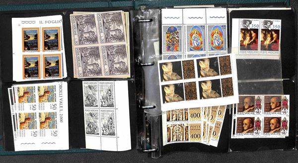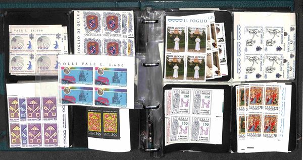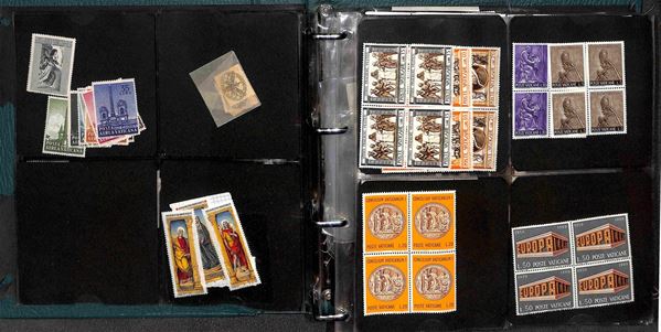 VATICANO - 1940/1995 - Collezione di valori e serie complete del periodo montate in album raccoglitore a tasche - singoli dal '40 al '80 e in quartina dal '60 al 95 - gomma integra