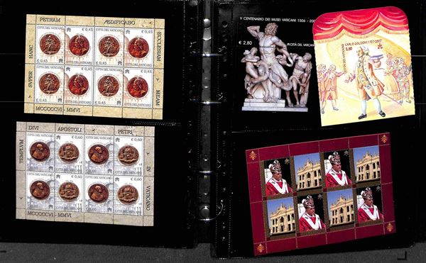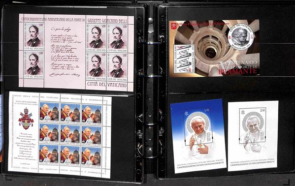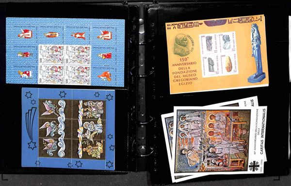 VATICANO - 1945/2016 - Collezione di valori serie complete foglietti minifogli e libretti del periodo montati in 1 grande + 3 piccoli album raccoglitore + 1 album raccoglitore a tasche (foglietti + libretti) - non completa ma avanzata - gomma integra