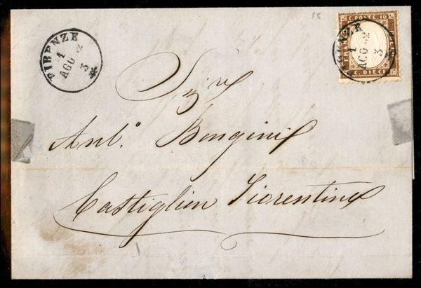 10 cent bruno (1c) isolato su lettera da Firenze a Castiglion Fiorentino del 1.8.62 - molto bella - ex coll. Provera