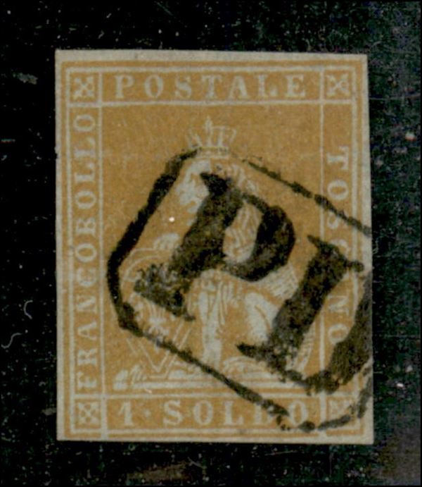1851 - 1 soldo bistro su azzurro (2b) usato (PD in cartella) - ottimi margini regolari da ogni lato - cert. R. Diena