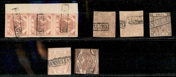 1858 - Insieme di 28 pezzi di 5 valori diversi - usati - da esaminare