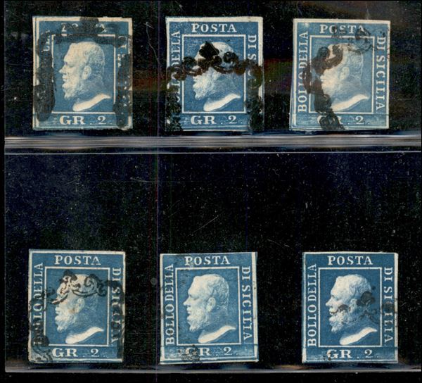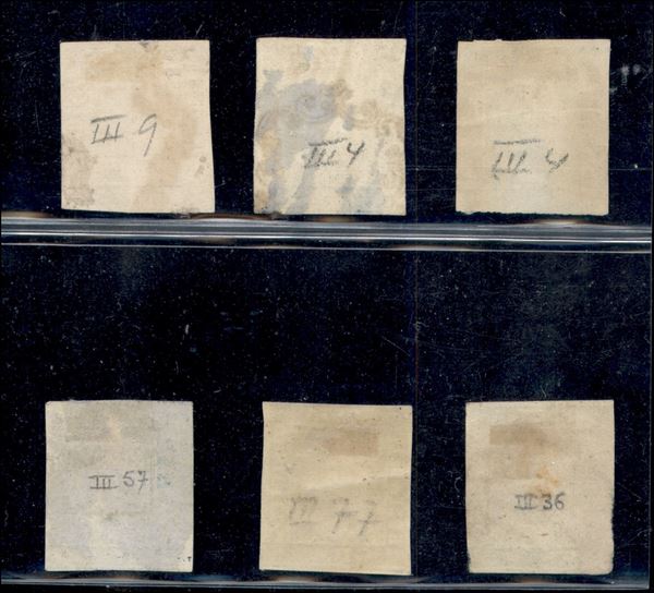 1859 - Sei valori del 1 grano (8) III Tavola - tutti plattati - usati
