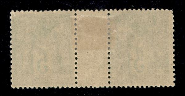 1876/1881 – Coppia del 5 cent (Unif. 64) I tipo con interspazio di foglio nuovo con gomma